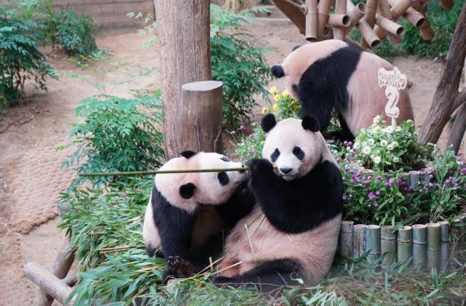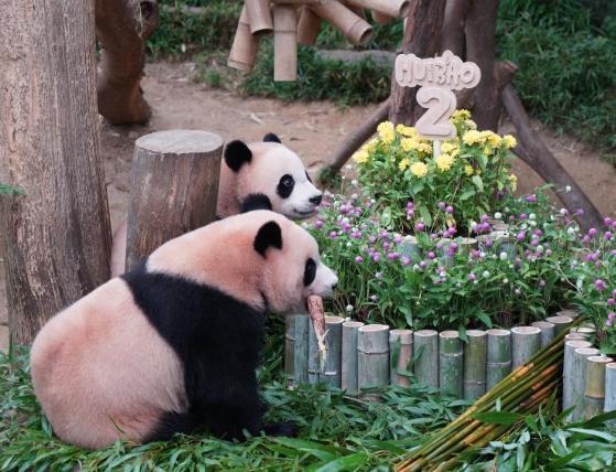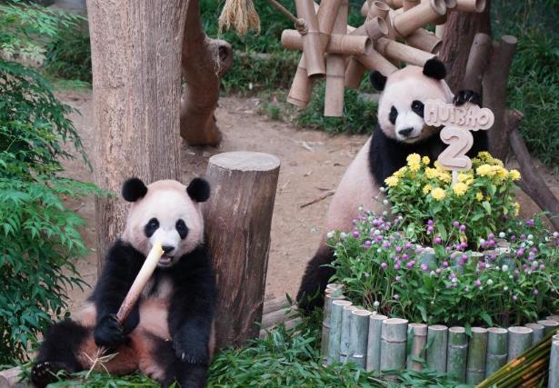 愛寶樂園為雙胞胎大熊貓準(zhǔn)備了用竹子制成的大型生日蛋糕,生日禮物則包括清涼的冰床和各類用竹子制成的“豐容”玩具等。據(jù)愛寶樂園方面介紹,雙胞胎出生時體重分別只有180克和140克,如今體重都已接近70公斤。