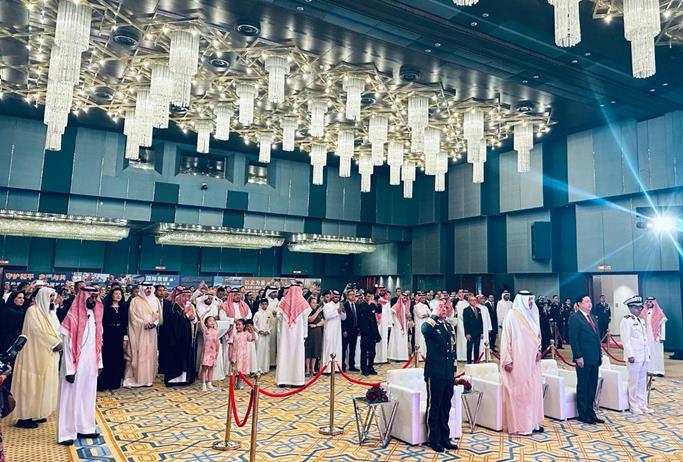 人民網(wǎng)迪拜7月24日電(記者任皓宇)7月24日,中國駐沙特大使館隆重舉行慶祝中國人民解放軍建軍98周年招待會。中國駐沙特大使常華,沙內(nèi)政部副大臣阿卜杜拉齊茲·阿亞夫親王、沙軍總參謀長顧問穆塔瓦少將、伊斯蘭軍事反恐聯(lián)盟副秘書長穆罕默德準將等軍政高官,多國駐沙使節(jié)、武官,中資企業(yè)、華僑華人代表等約300人參加。