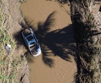 10月12日,在墨西哥韋拉克魯斯州波薩里卡,一輛汽車陷在強降雨導致的積水中(無人機照片)。新華社發(fā)(弗朗西斯科·卡涅多攝)
