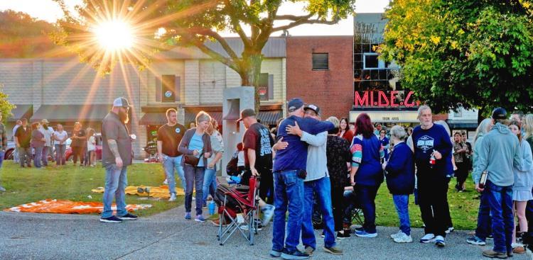 圖為當(dāng)?shù)貢r(shí)間10月12日,美國田納西州韋弗利,民眾聚集在漢弗萊斯縣法院,為炸藥廠爆炸事件的遇難者舉行燭光守夜活動。 CFP供圖