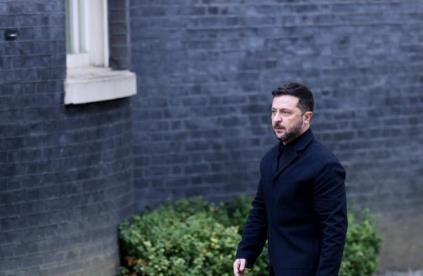 10月24日,在英國(guó)倫敦,烏克蘭總統(tǒng)澤連斯基走向唐寧街10號(hào)首相府。新華社記者李穎攝