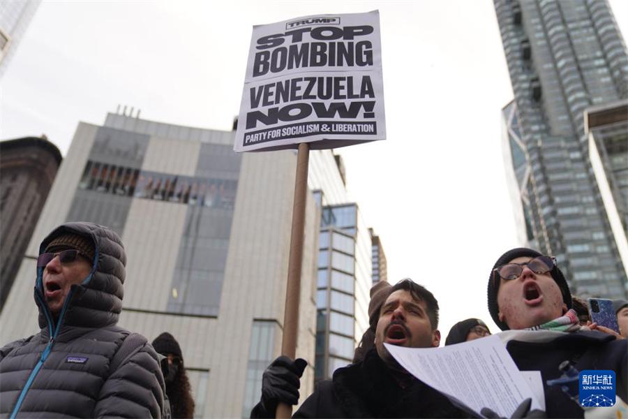 1月3日,近千名民眾在美國紐約舉行集會游行,抗議美國對委內瑞拉實施軍事打擊。