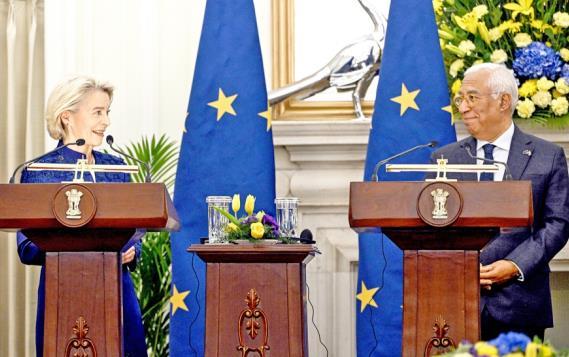 自歐盟委員會1月21日正式提出《數(shù)字網(wǎng)絡法案》立法提案以來,歐盟領導人在多個場合力推該法案。圖為當?shù)貢r間1月27日,歐盟委員會主席馮德萊恩(左)與歐洲理事會主席科斯塔共同出席新聞發(fā)布會。 CFP供圖