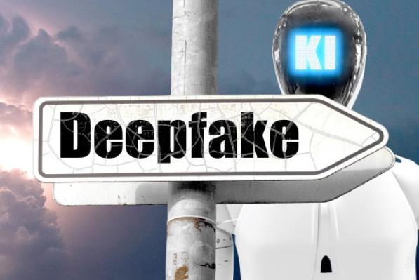 圖為當(dāng)?shù)貢r(shí)間2026年3月12日,在德國(guó)巴伐利亞州明德海姆,寫有Deepfake字樣的標(biāo)識(shí)與AI象征形象并置,呈現(xiàn)關(guān)于人工智能生成視頻與聲音的討論。深度偽造技術(shù)可操縱信息,為媒體與社會(huì)帶來(lái)新挑戰(zhàn)。 CFP供圖