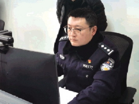 圖為高少軍緊盯著屏幕攔截被詐騙資金。 佳縣公安局供圖