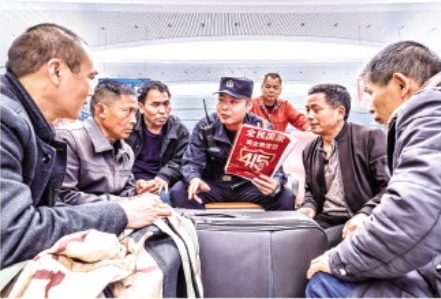 圖為孫斌壽在烏魯木齊站候車大廳進行法治宣講。 烏魯木齊鐵路公安處供圖
