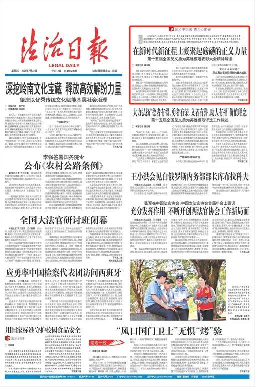 天地有正氣,義勇古今頌。7月21日,第十五屆全國見義勇為英雄模范表彰大會在北京召開,隆重表彰60個(gè)見義勇為英雄模范個(gè)人和群體。本報(bào)自今天起開設(shè)“見義中華魂 勇為萬家安”專欄,刊發(fā)一系列相關(guān)報(bào)道,進(jìn)一步推動見義勇為工作高質(zhì)量發(fā)展,在全社會營造見義勇為氛圍,為助力建設(shè)更高水平的平安中國、法治中國匯聚更多的正能量。