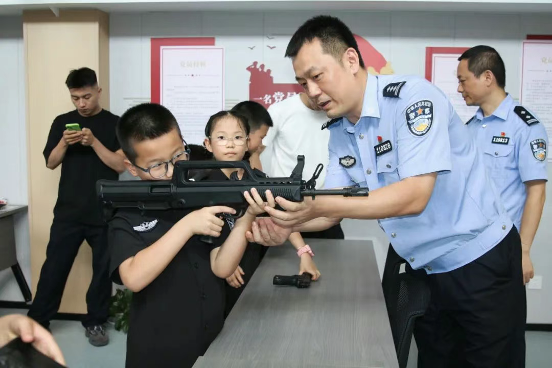 警務(wù)裝備展示環(huán)節(jié)更是讓孩子們大開眼界。警用無(wú)人機(jī)、AI眼鏡及各類警用槍支等平時(shí)只能在電視里看到的裝備一一呈現(xiàn)在眼前。