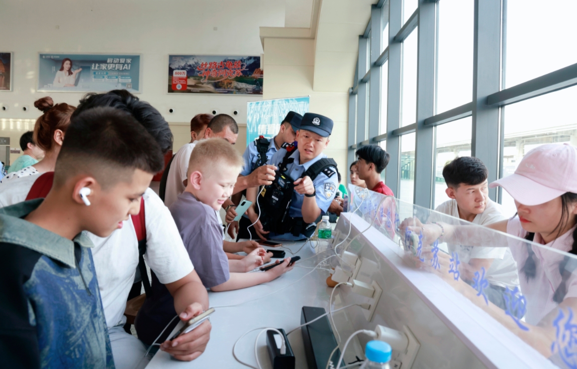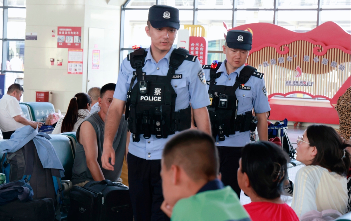 “出現(xiàn)警情后,指揮室會第一時間通知相關(guān)警力到現(xiàn)場處置?!彼L王彥帥表示,在車站秩序維護上,派出所針對暑運客流高峰特征,科學調(diào)配警力資源,加密售票廳、候車室等重點區(qū)域的巡邏頻次與管控力度,及時疏導擁堵人群,引導旅客有序購票、安檢、候車。此外,民警主動延伸服務觸角,為旅客提供問詢指引、失物查找等便民服務。