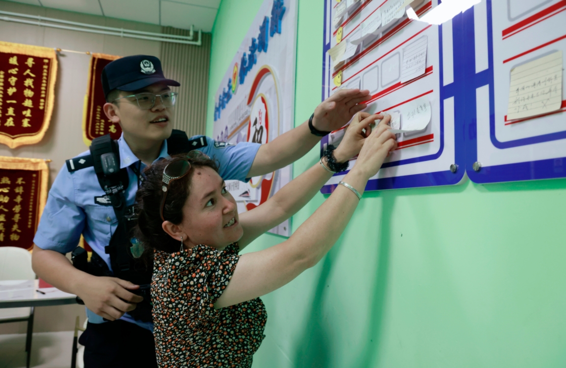 圖為受到幫助的旅客將感謝寄語貼在阿克蘇站派出所“海濤調(diào)解室”內(nèi)的留言展板上。武隴慧 攝