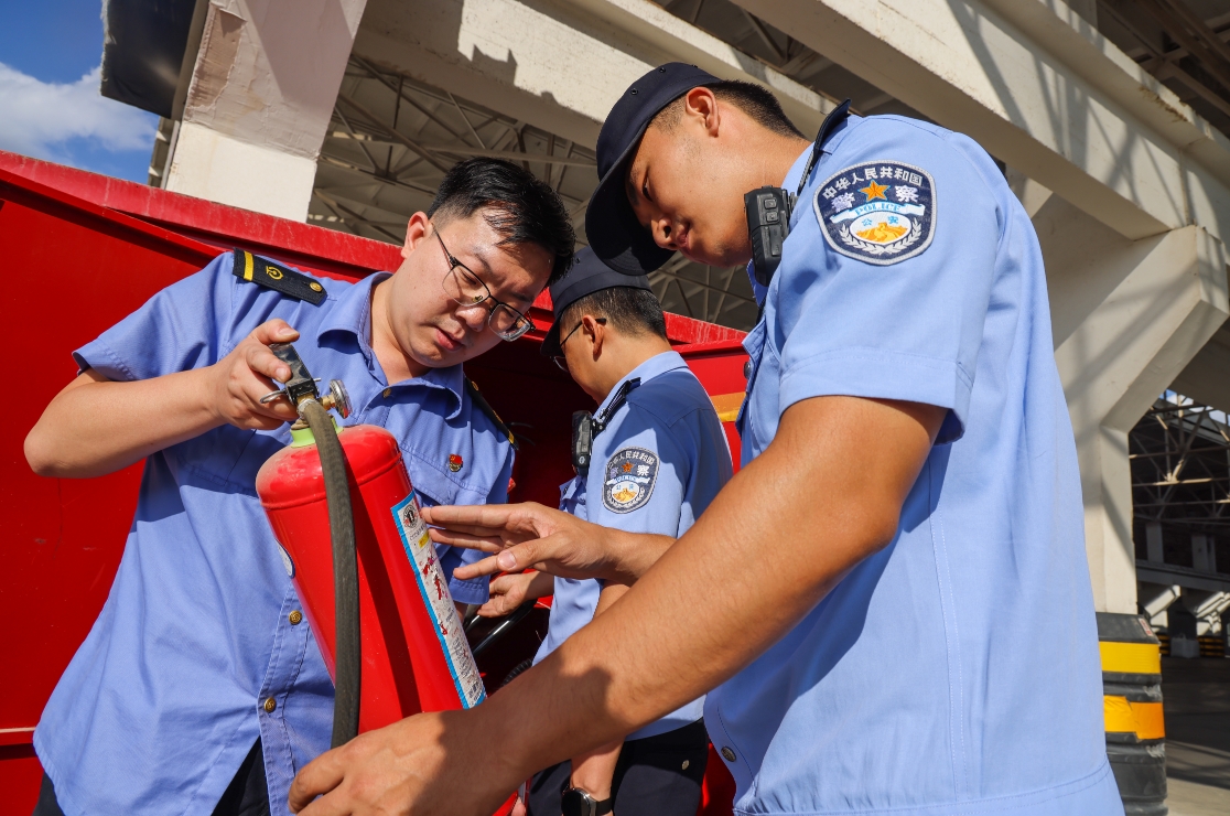 圖為8月26日,民警深入哈密鐵路物流中心開展安全檢查。