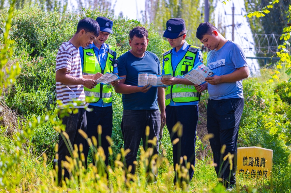 近日,新疆喀什地區(qū)鐵路線路周邊無花果、葡萄相繼迎來“豐收季”,烏魯木齊鐵路公安局喀什公安處組織民輔警走進田間地頭、林圃果園,開展“鐵警護豐收 助農(nóng)話安全”普法宣傳活動,通過警用車載喇叭播放鐵路安全知識、開展矛盾糾紛排查化解工作、現(xiàn)場普法答疑等方式,結(jié)合典型案例,向群眾普及鐵路安全知識,講解電信網(wǎng)絡(luò)詐騙類型及防范技巧,為“采摘季”增添安全保障,全力守護群眾“錢袋子”。