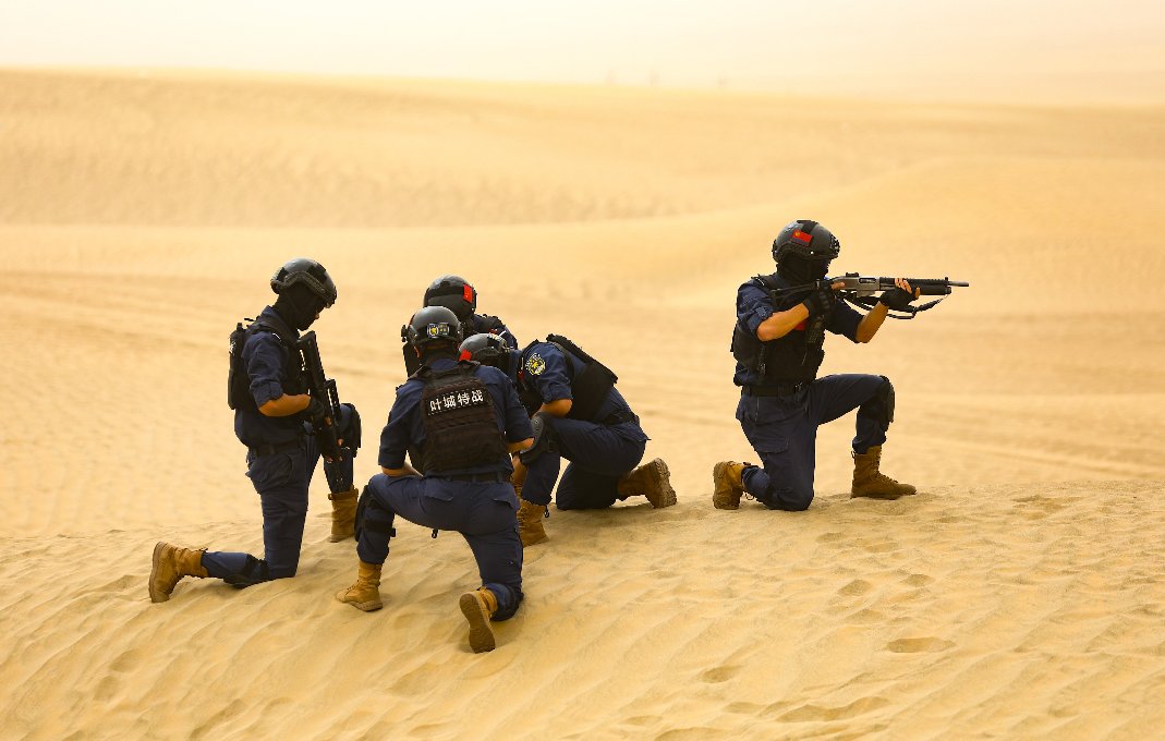 9月5日,新疆維吾爾自治區(qū)葉城縣公安局特警大隊在沙漠戈壁開展秋季實戰(zhàn)化訓(xùn)練,進行沙漠定向越野、極限耐力行軍、沙漠搜捕、武器精準射擊等科目,應(yīng)對風(fēng)沙、高溫、逆光等復(fù)雜環(huán)境考驗,所有訓(xùn)練科目高效完成,不僅錘煉了特警隊員的體能與專業(yè)技能,更凝聚協(xié)作力量,為守護邊疆穩(wěn)定筑牢了根基。