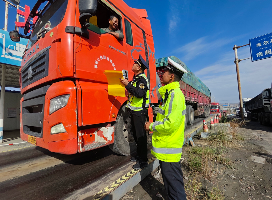 國慶、中秋雙節(jié)將至,為全力營造更加安全、有序、和諧、暢通的交通環(huán)境,9月27日,新疆庫爾勒市公安局交通管理大隊塔什店中隊與巴音郭楞執(zhí)法支隊博湖執(zhí)法大隊,持續(xù)聚焦轄區(qū)G216線高頻次行駛的重點大型貨運車輛、混凝土攪拌運輸車等車輛超速、超員、超載和駕駛人疲勞駕駛,強化路警聯(lián)勤聯(lián)動機制,通過“定點檢查+流動巡查+精準宣傳”相結合的方式,強化信息共享、執(zhí)法協(xié)作,為雙節(jié)期間防事故、保安全、保暢通工作打下堅實基礎。