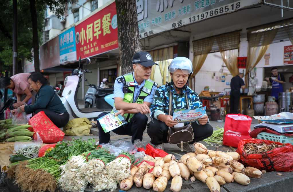 10月15日,江西省宜豐縣公安局交管大隊組織民輔警深入轄區(qū)早市,向群眾開展以“戴好頭盔、安全出行”為主題的宣傳活動,擰緊人間煙火氣的“安全閥”。