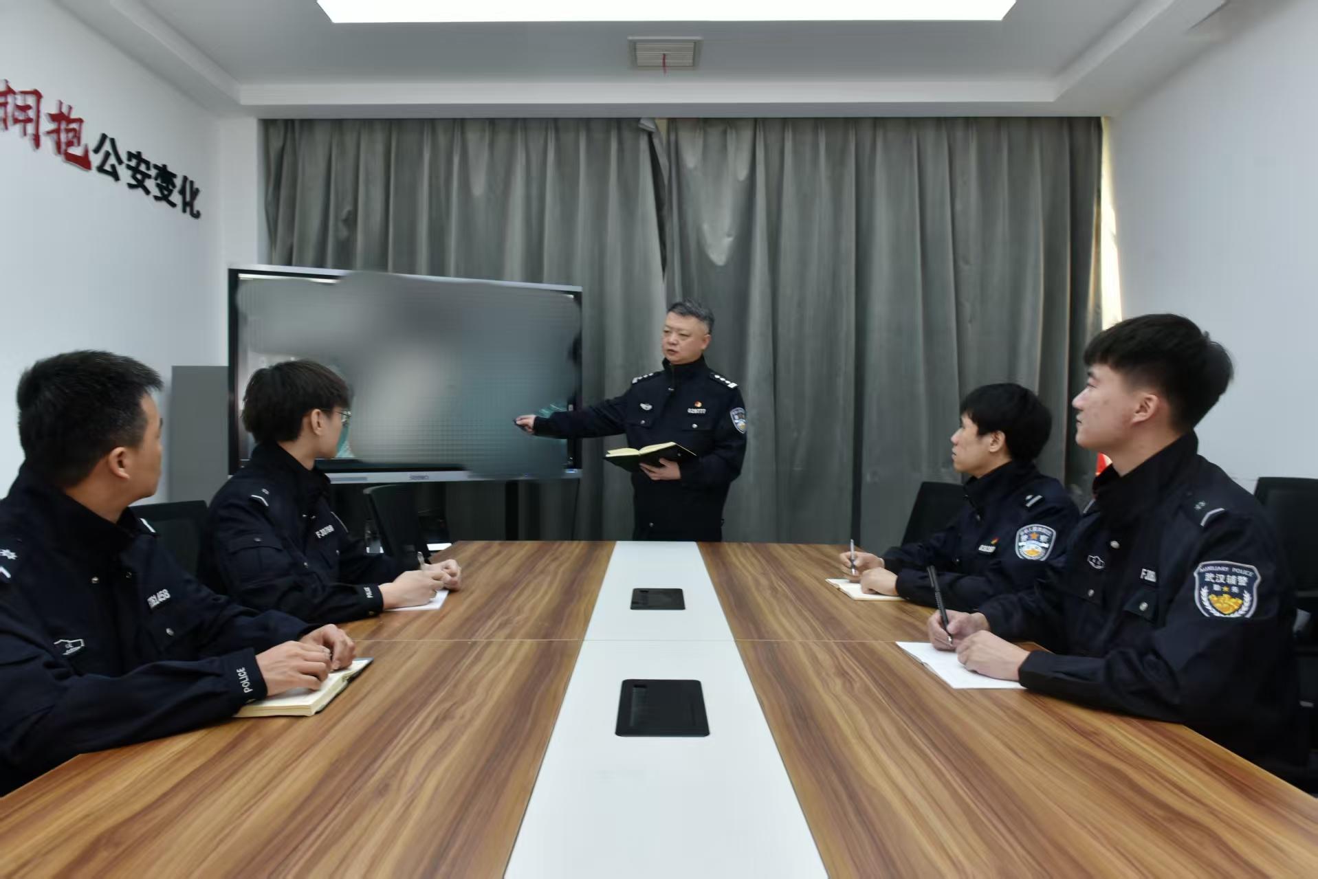 圖為成浩(中)帶領(lǐng)年輕民警開展案件復盤。
