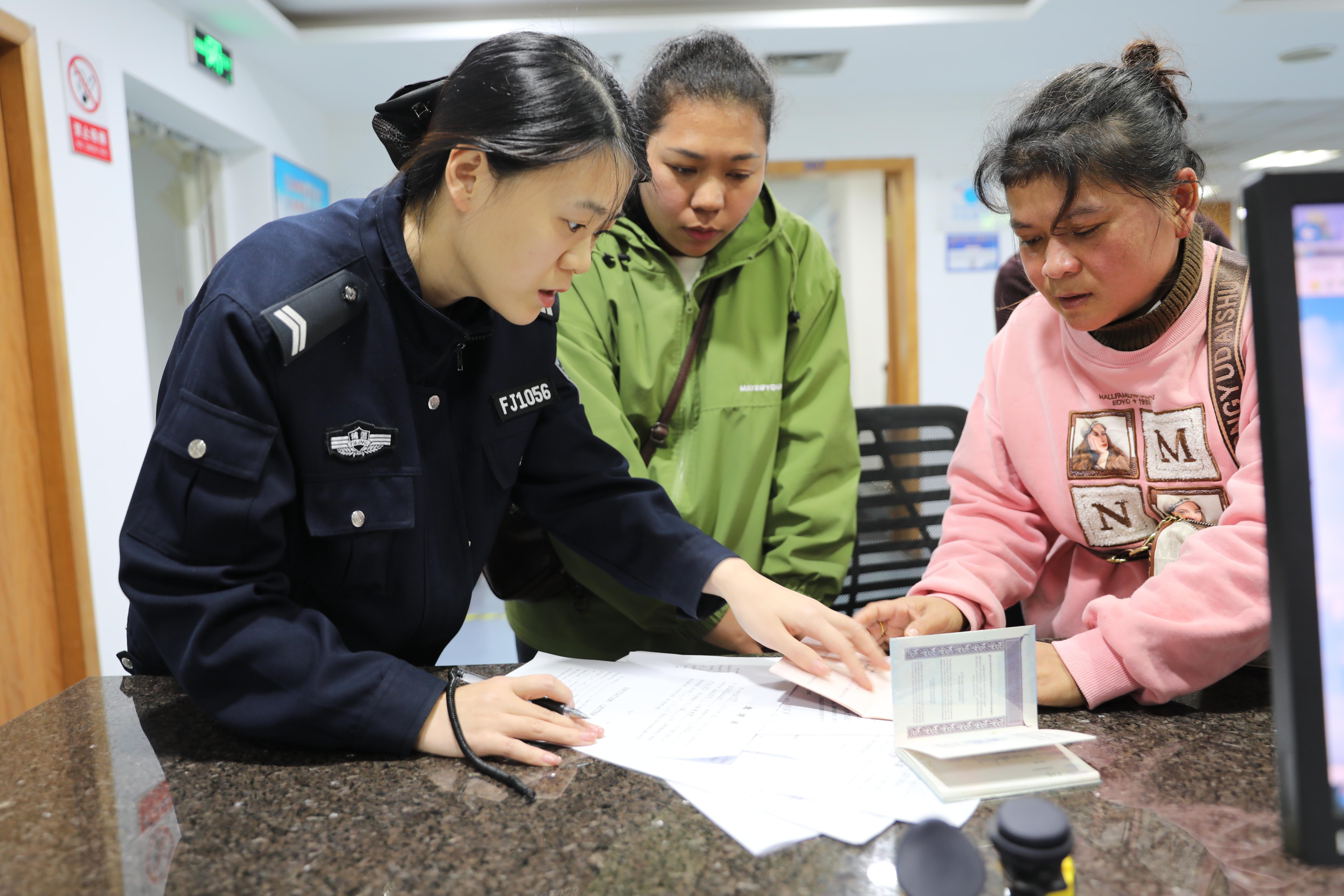 “沒想到在縉云就能辦續(xù)簽,不用請(qǐng)假跑麗水市區(qū),省了2小時(shí)車程還少花路費(fèi),太貼心了!”10月30日下午,縉云縣仙都街道鐵城村村民麻建華陪著外籍妻子剛辦完簽證業(yè)務(wù),就對(duì)著民警連連點(diǎn)贊。現(xiàn)場(chǎng)9位外籍人士正有序填寫表格、提交材料、核對(duì)信息,還有20多人圍著民警咨詢簽證政策、居留許可辦理等問題。