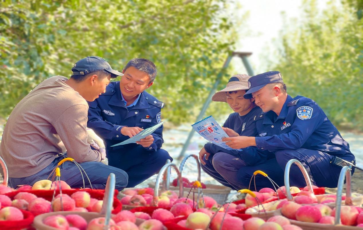 新疆溫宿縣公安局深入開(kāi)展“法治為民辦實(shí)事”實(shí)踐活動(dòng),針對(duì)果農(nóng)銷售集中、資金流動(dòng)大的特點(diǎn),民警提前研判涉農(nóng)詐騙風(fēng)險(xiǎn),定制“果園反詐套餐”。