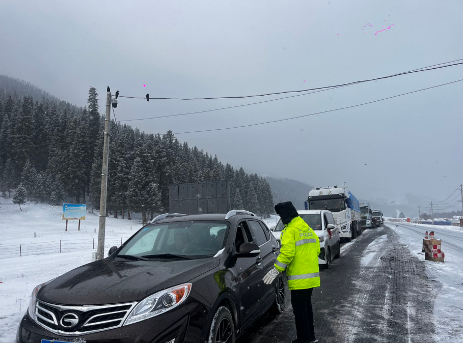 11月22日,新疆和靜縣山區(qū)道路迎來(lái)降雪天氣,部分道路積雪結(jié)冰,給群眾出行和道路交通安全帶來(lái)風(fēng)險(xiǎn)挑戰(zhàn)。和靜縣公安局交通管理大隊(duì)迅速啟動(dòng)惡劣天氣交通管理應(yīng)急預(yù)案,全警動(dòng)員、科學(xué)部署,全力保障轄區(qū)道路交通安全暢通,守護(hù)群眾出行平安。交警在轄區(qū)重點(diǎn)路段、重點(diǎn)時(shí)段增派警力,采取固定執(zhí)勤和巡邏執(zhí)勤相結(jié)合的方式,指揮疏導(dǎo)過(guò)往車輛和行人有序通行,全力保障群眾出行安全。