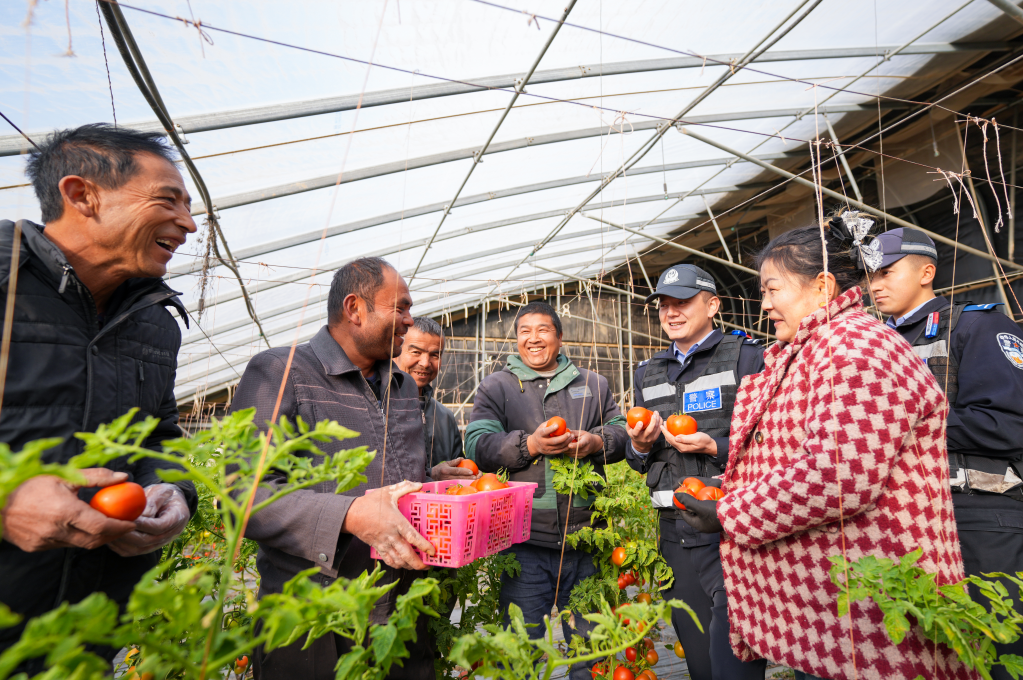 圖為民警與種植戶親切交流,了解其生產(chǎn)經(jīng)營(yíng)中的困難與需求,提供貼心服務(wù)。