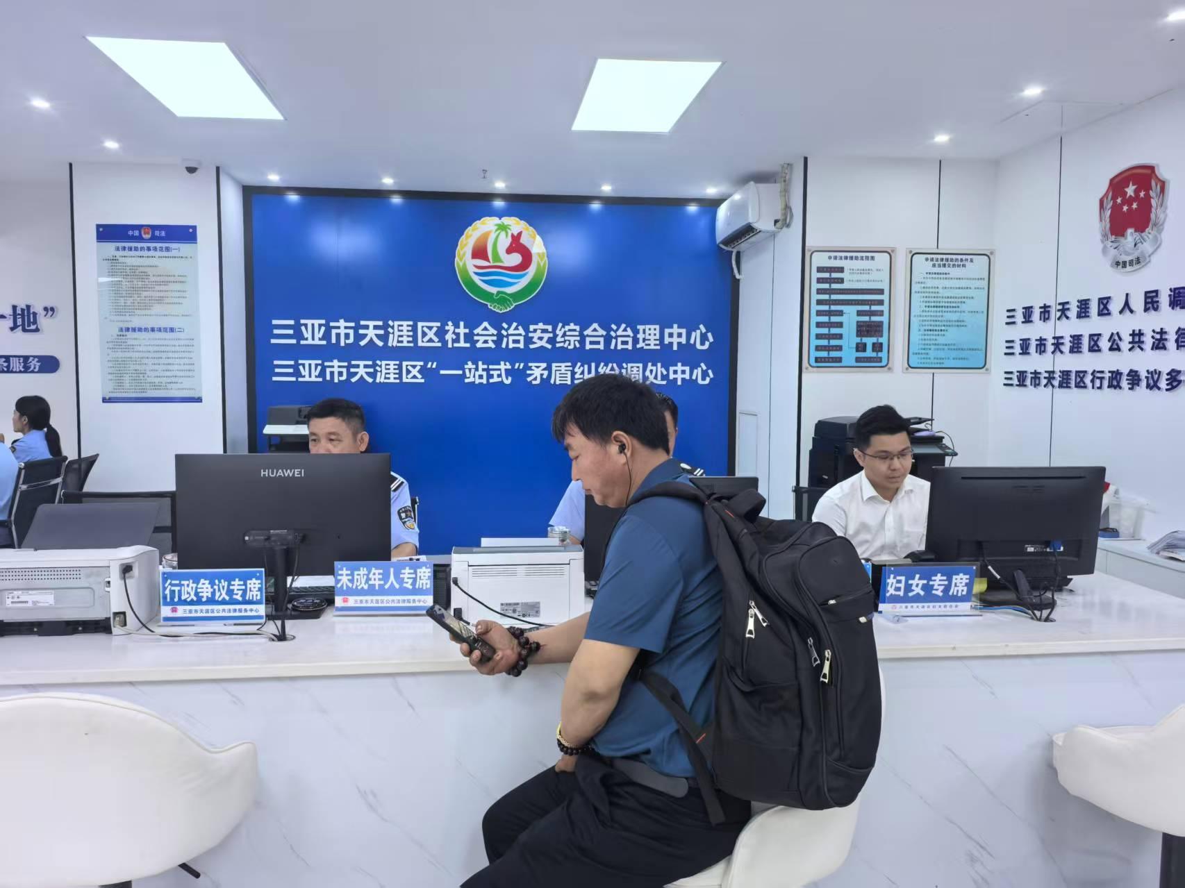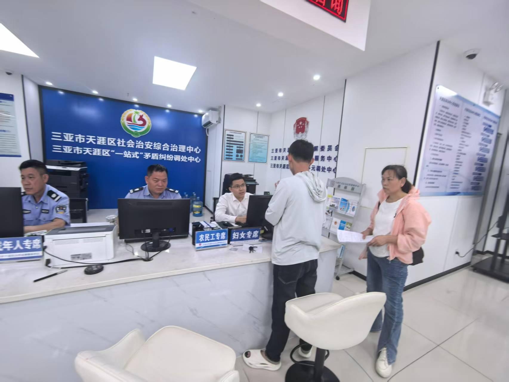 圖為務工人員到三亞市天涯區(qū)綜治中心咨詢問題。