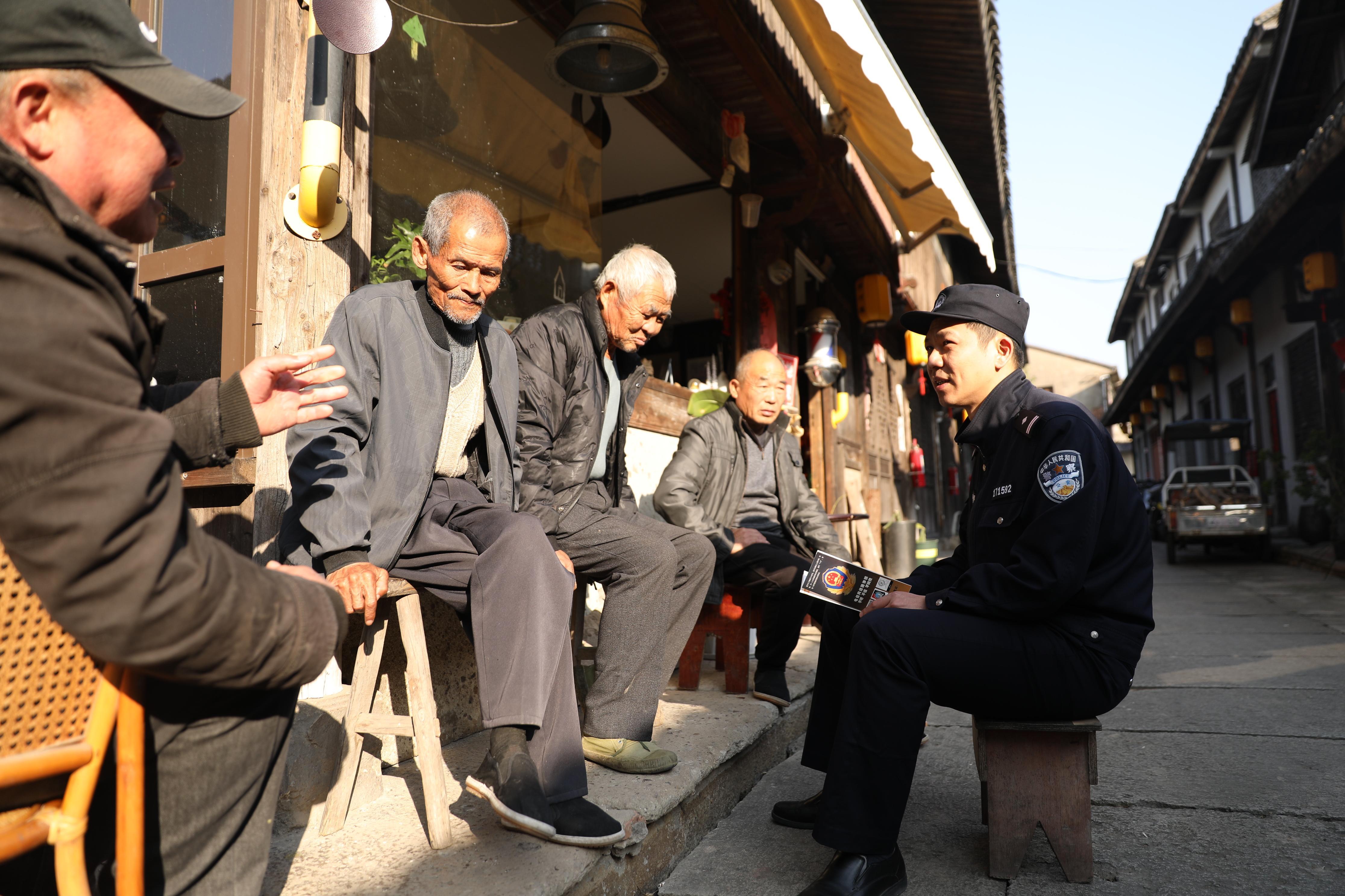 12月15日,浙江省臺(tái)州市公安局椒江分局下陳派出所民警走進(jìn)轄區(qū)古村落橫河陳村向群眾宣講反詐騙知識(shí)。