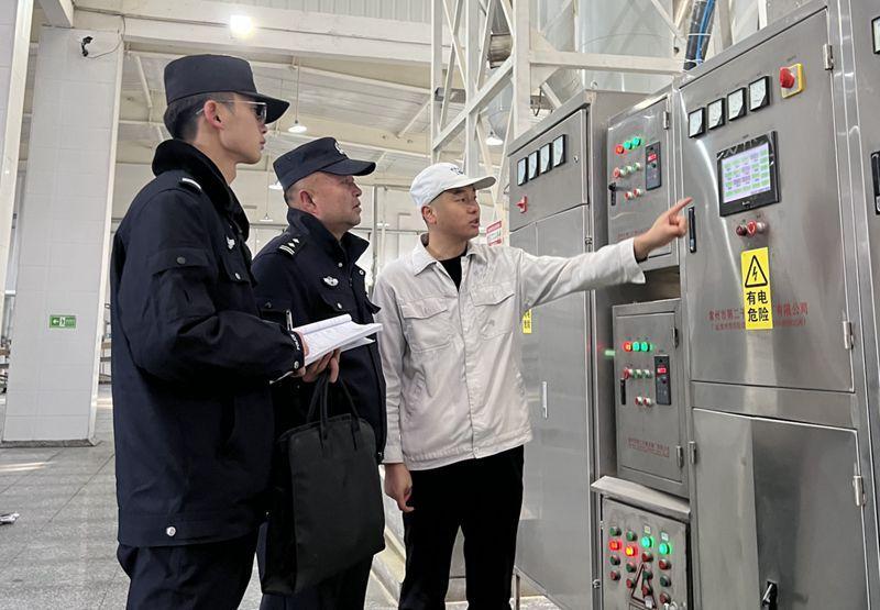 日頭斜過(guò)鋅鋼板廠房的尖頂,甘肅省張掖市民樂(lè)縣工業(yè)園區(qū)裹著細(xì)沙的風(fēng),簌簌擦過(guò)水泥路面。這片沿戈壁鋪開(kāi)的園區(qū)里,廠房新舊交錯(cuò),部分墻皮已被風(fēng)蝕得泛白。兩名民警一前一后穿行其間,一人壓了壓帽檐留意周邊環(huán)境,一人手持臺(tái)賬仔細(xì)核對(duì)著門牌,朝著下一間廠區(qū)走去。
