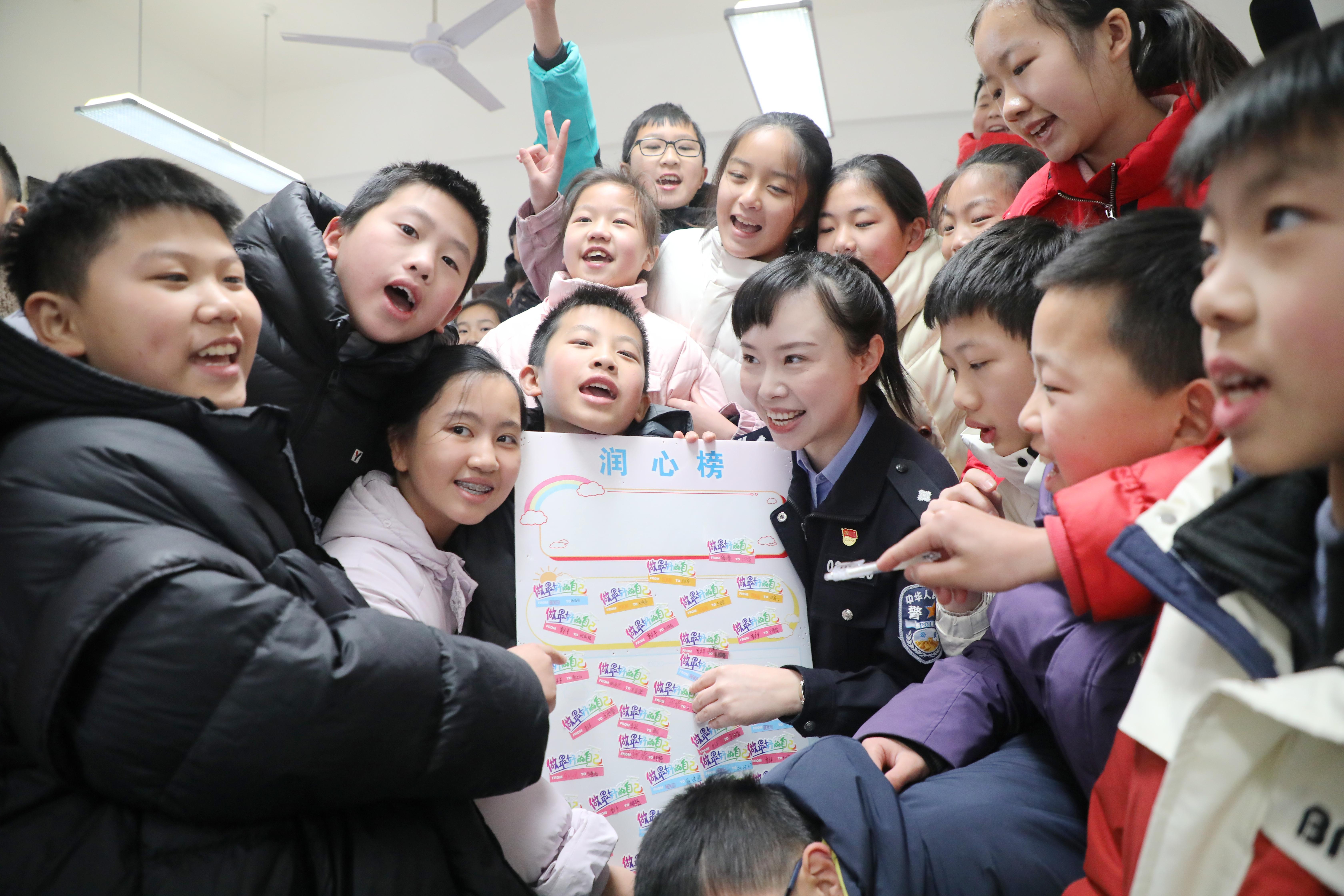 圖為1月21日,民警走進九江小學通過互動游戲宣講安全知識。