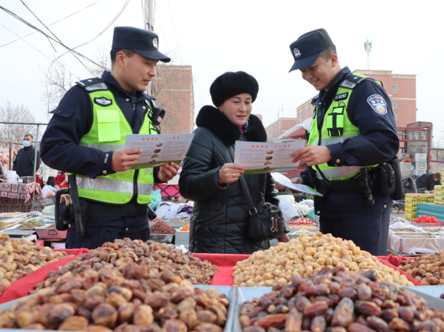 春節(jié)將至,鐵路周邊巴扎人流激增,近日,喀什鐵路公安處巴楚站派出所組建“金胡楊普法小分隊”,開展“春節(jié)護路送法治,平安相伴過大年”主題宣傳活動,提升群眾法治與安全防范意識,引導(dǎo)群眾主動守護鐵路安全,發(fā)現(xiàn)隱患及時報警,共筑鐵路安全防線。