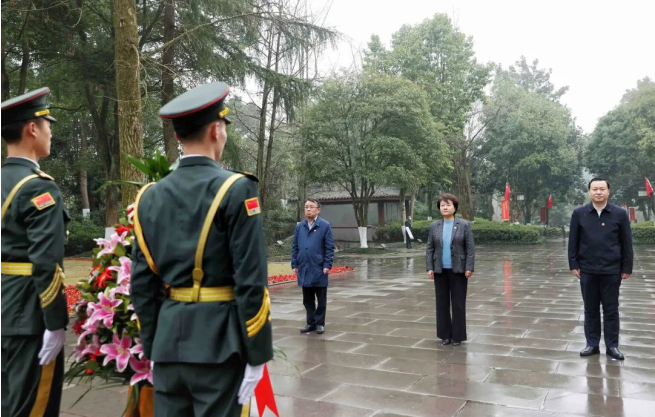 在鄧小平故居,葛曉燕在鄧小平銅像前敬獻花籃,瞻仰小平故居,觀看陳列館文物,深切緬懷小平同志在革命、建設和改革發(fā)展時期的豐功偉績。