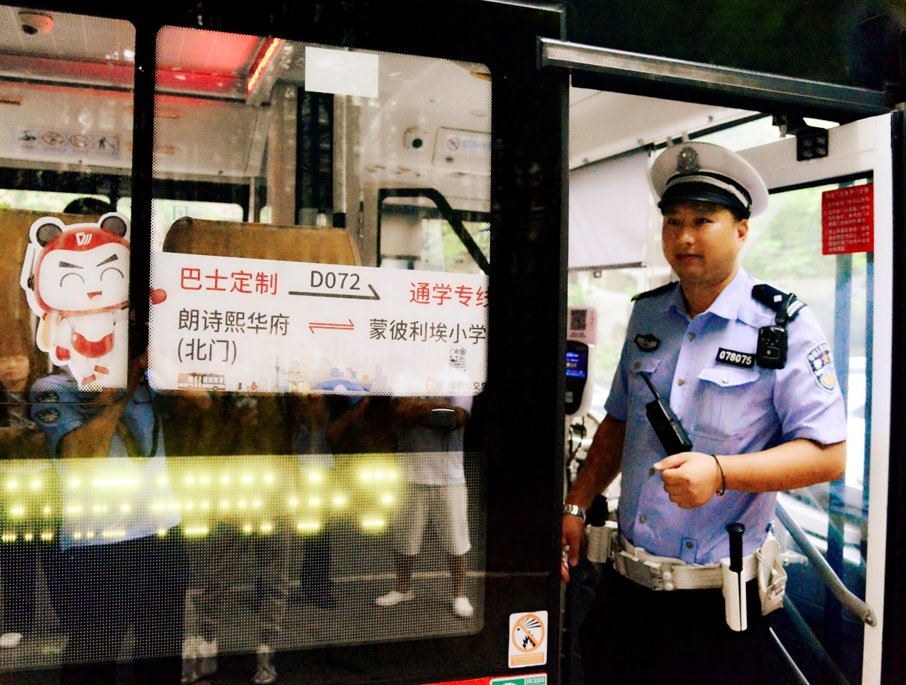 該片區(qū)“預(yù)約定制公交出行”可以通過(guò)成都公交APP進(jìn)行便捷購(gòu)票(分為次票5元,月票100元),分別對(duì)蒙彼利埃幼兒園、蒙彼利埃小學(xué)、石室天府中學(xué)3所校園各設(shè)計(jì)了1條符合需求的定制公交線(xiàn)路,每條線(xiàn)路約5公里,串聯(lián)朗詩(shī)熙華府、尚郡等多個(gè)小區(qū),有效解決了周邊學(xué)生下放學(xué)出行問(wèn)題。同時(shí),交警六分局根據(jù)前期調(diào)查摸底情況,精細(xì)規(guī)劃??空军c(diǎn),并設(shè)置醒目標(biāo)志標(biāo)牌,精準(zhǔn)安排運(yùn)行時(shí)間,落實(shí)站點(diǎn)保障警力,確保定制公交安全???,實(shí)現(xiàn)“車(chē)等人”的便利效果;在運(yùn)行保障中,提前對(duì)運(yùn)行線(xiàn)路的信號(hào)燈配時(shí)進(jìn)行優(yōu)化,有效縮短運(yùn)行時(shí)間,在擁堵節(jié)點(diǎn)落實(shí)路面保障警力,全力護(hù)航定制公交的安全、有序運(yùn)行;在學(xué)校終點(diǎn)站,依托“護(hù)學(xué)崗”警力護(hù)送學(xué)生過(guò)街,全力保障學(xué)生上放學(xué)安全。