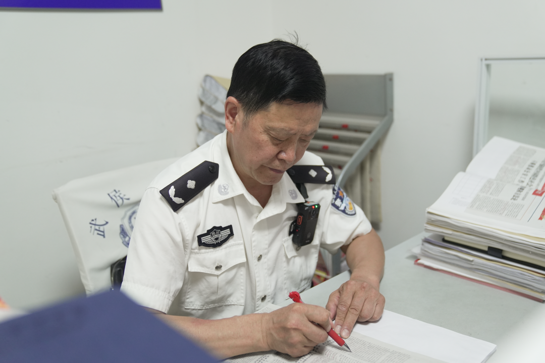 近年來,隨著智慧公安建設(shè)的不斷深入,基層警務(wù)工作駛?cè)肓丝萍夹畔⒒燔嚨?,民警接處警都配備了?zhí)法記錄儀、移動(dòng)警務(wù)通,材料審批、案卷建檔也都通過電腦完成。對(duì)于郭學(xué)彬來說,警用裝備在變,但警務(wù)工作的本質(zhì)沒有變,踏踏實(shí)實(shí)為民服務(wù)的初心沒有變。于是,沒有幾年就要退休的“老郭”主動(dòng)向年輕人學(xué)習(xí),很快便掌握了新裝備的使用方法, 并將其熟練運(yùn)用到了社區(qū)警務(wù)工作中。