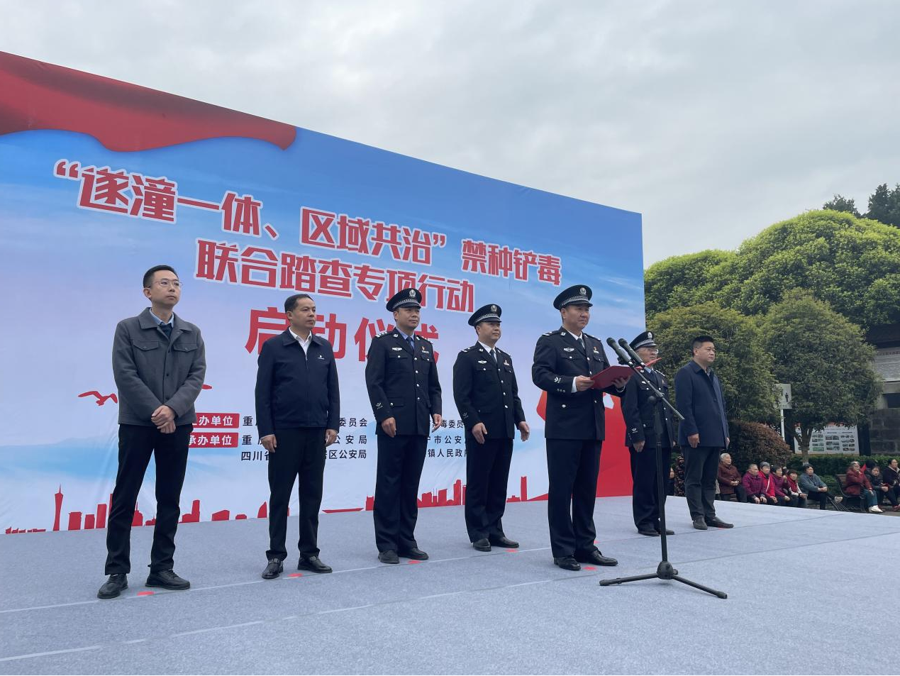 為進(jìn)一步鞏固川渝兩地禁毒工作成果,切實(shí)加強(qiáng)兩地禁毒工作的協(xié)作配合,堅(jiān)決遏制非法種植毒品原植物問(wèn)題反彈,力爭(zhēng)實(shí)現(xiàn)“遂潼一體化”非法種植毒品原植物基本禁絕的目標(biāo)。3月20日上午,川渝“遂潼一體、區(qū)域共治”禁種鏟毒聯(lián)合踏查專項(xiàng)行動(dòng)啟動(dòng)儀式在重慶市潼南區(qū)雙江鎮(zhèn)楊闇公舊居廣場(chǎng)舉行,全面拉開(kāi)兩地禁種鏟毒聯(lián)合踏查攻堅(jiān)戰(zhàn)的序幕。潼南區(qū)禁毒辦、潼南區(qū)公安局相關(guān)警種,四川省遂寧市禁毒辦、遂寧市安居區(qū)公安局相關(guān)警種,出席啟動(dòng)儀式。警用無(wú)人機(jī)專業(yè)操控人員,遂潼兩地毗鄰鎮(zhèn)(街道)代表、專職社工、禁毒志愿者代表200余人參加啟動(dòng)儀式。