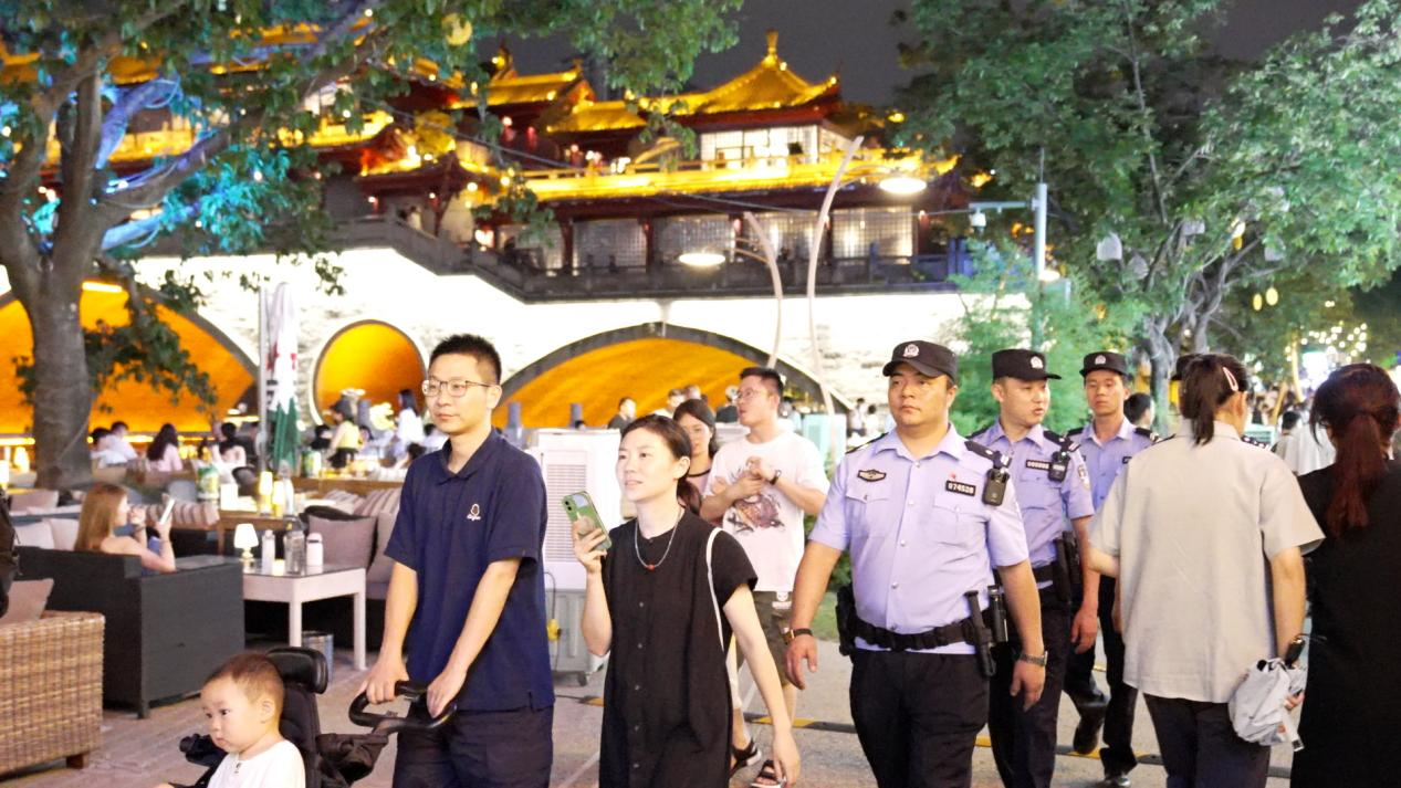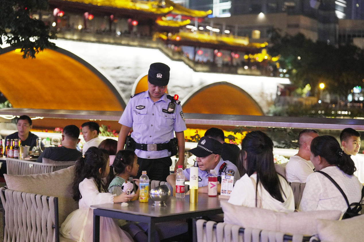 “無論是外地游客還是本地居民,很多人都喜歡在望江河邊吹吹風、泡泡吧?!苯z管路的“管段”民警段軍2009年從交警分局調到望江路派出所后,15年來一直負責老馬路社區(qū)的相關警務工作。段軍說,每逢節(jié)假日來絲管路放松的人就特別多,所上也會投入更多精力在“酒吧街”和臨近的望江公園、川大博物館等景點及區(qū)域。從節(jié)前的消防安全檢查、治安隱患排查,到節(jié)日期間的巡邏防控、安全守護,大家一絲不茍、全力堅守。