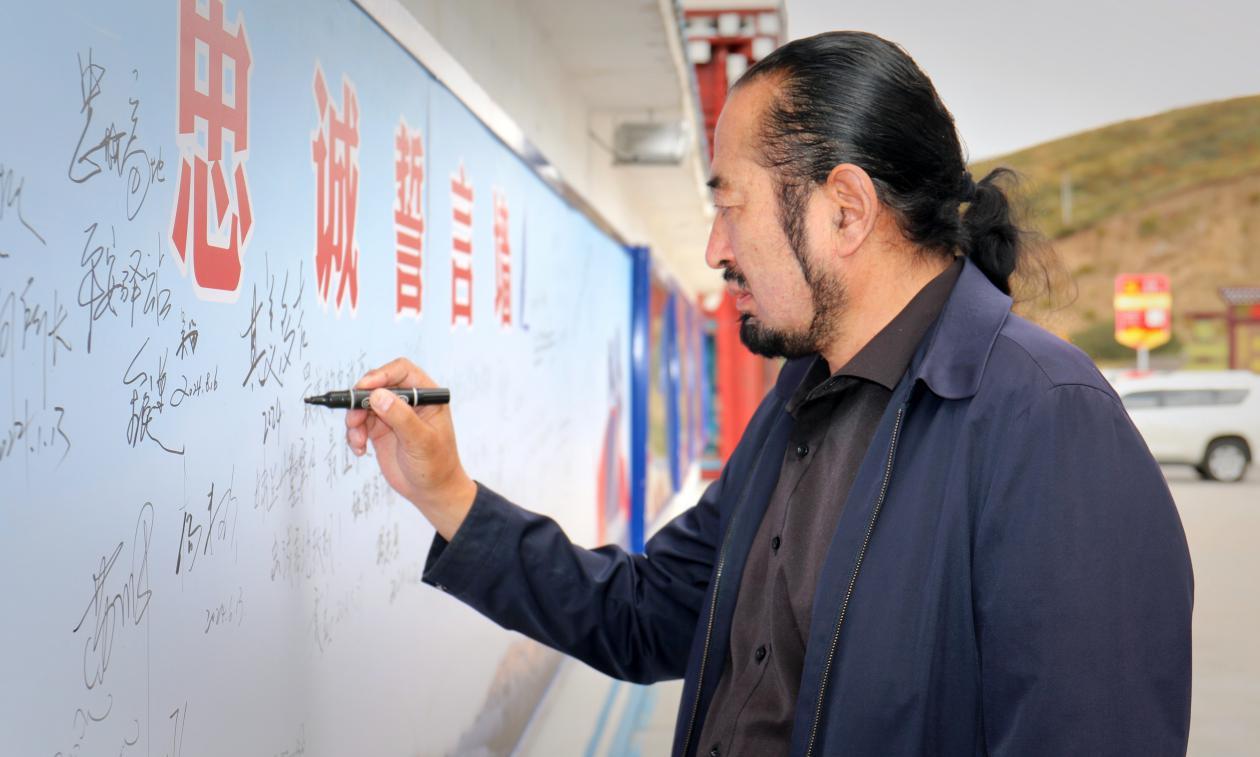 “缺少的是氧氣,擁有的是忠誠!”有感于忠誠誓言的感召,正值中秋佳節(jié)之際,剛和劉鵬一道參加學(xué)習(xí)貫徹黨的二十屆三中全會精神勞模工匠宣講活動回來的“時代楷?!逼涿蓝嗉?,途徑洛戈梁子警務(wù)站時,專門打卡致敬忠誠高地,并在忠誠誓言墻上留言,帶來了中秋的祝福。