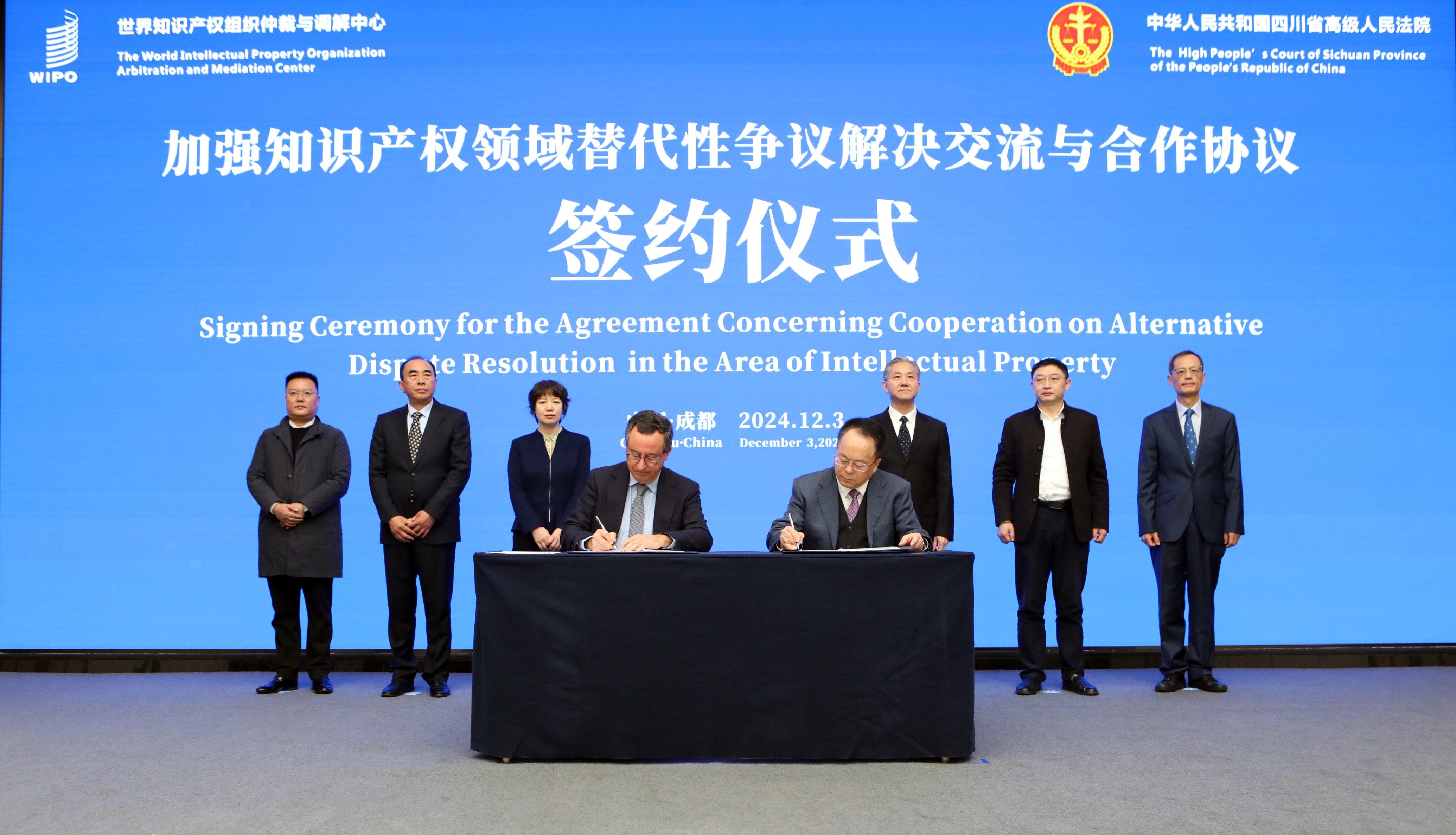 12月3日,四川高院黨組書記、院長王樹江與世界知識產(chǎn)權(quán)組織仲裁與調(diào)解中心司長伊格納西奧·德·卡斯特羅正式簽署《加強(qiáng)知識產(chǎn)權(quán)領(lǐng)域替代性爭議解決交流與合作協(xié)議》,這是四川高院為企業(yè)提供更加高效、便捷的糾紛化解機(jī)制的重要舉措?;诖?,在最高人民法院的支持下,四川高院與世界知識產(chǎn)權(quán)組織仲裁與調(diào)解中心進(jìn)行了近一年的磋商,最終成功簽署合作協(xié)議。