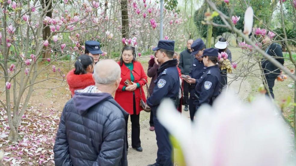 三月春風暖,四川眉山東坡文創(chuàng)園內(nèi)游人如織。粉白花瓣紛飛間,一抹抹藏藍身影穿梭其中。春風十里,他們用腳步丈量平安,用笑容傳遞溫暖,讓這場春日之約更添安心與溫情。