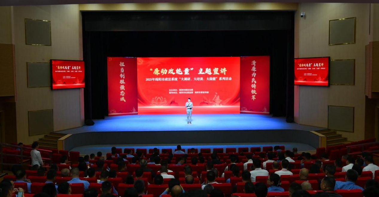 近日,2025年四川省綿陽(yáng)市政法系統(tǒng)“大調(diào)研、大培訓(xùn)、大提能”系列活動(dòng)之“廉動(dòng)政能量”主題宣講在綿州大劇院舉行。綿陽(yáng)市委副書記、政法委書記莫懷學(xué),市委常委、市紀(jì)委書記、市監(jiān)委主任金武,副市長(zhǎng)、市公安局局長(zhǎng)梁小輝,市檢察院檢察長(zhǎng)宋驥出席活動(dòng)。