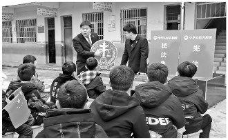 新年開學(xué)第一天,江西省萬年縣人民法院法官來到該縣石鎮(zhèn)鎮(zhèn)最偏遠(yuǎn)的鄉(xiāng)村小學(xué)開展送法進校園活動。圖為法官結(jié)合相關(guān)案件,對校園欺凌、性侵預(yù)防、禁毒等內(nèi)容進行宣講。
