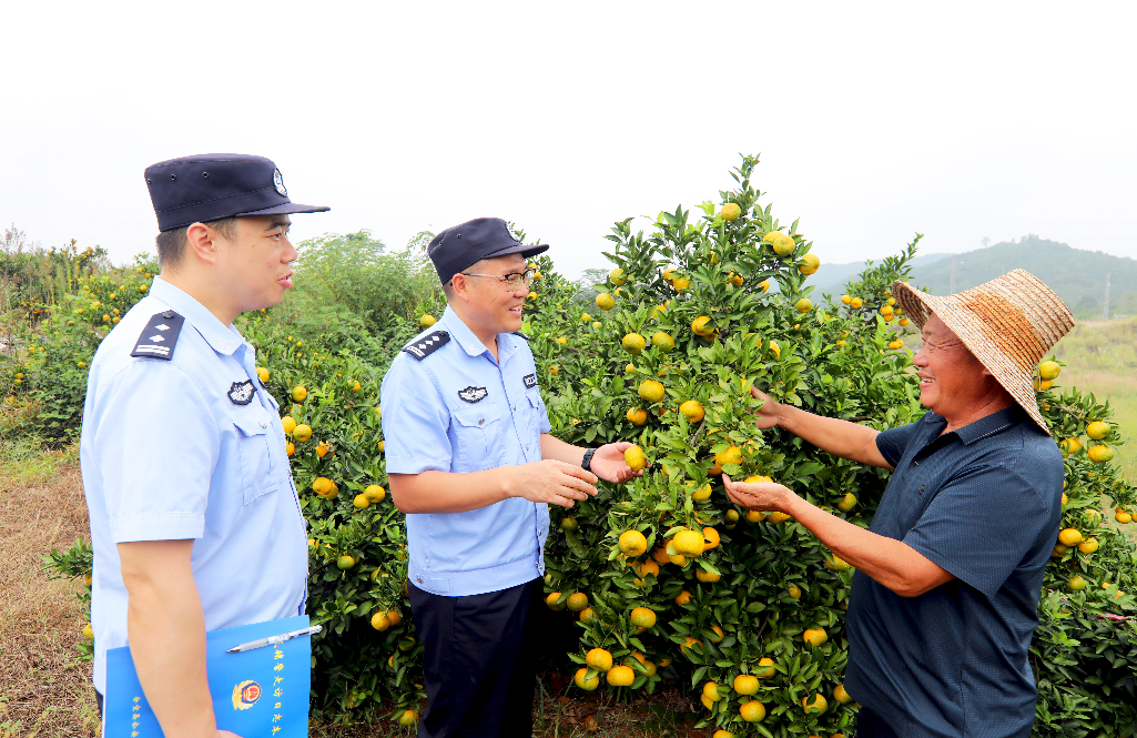 金秋時節(jié),江西省分宜縣雙林鎮(zhèn)蜜桔種植基地喜迎豐收。為促進當?shù)靥厣麡I(yè)健康發(fā)展,分宜縣公安局雙林派出所立足轄區(qū)產業(yè)特色,組織民輔警深入果園基地開展治安巡邏、反詐宣傳、矛盾化解、助農服務等工作,將基層警務工作延伸至田間地頭,為鄉(xiāng)村特色產業(yè)發(fā)展保駕護航。