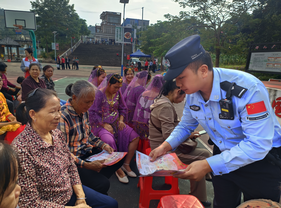 當(dāng)天9時,國門廣場成為普法宣傳的“前沿陣地”。民警聚焦群眾最關(guān)心的法律需求,圍繞防范電信網(wǎng)絡(luò)詐騙、邊境法律法規(guī)等內(nèi)容,開展針對性普法宣傳?;顒又?,民警通過發(fā)放定制化宣傳手冊、剖析真實詐騙案例、現(xiàn)場答疑解惑等方式,將法律知識轉(zhuǎn)化為群眾聽得懂、用得上的“護(hù)身指南”。針對老年人群體易受侵害的“痛點”,民警重點講解“虛假投資”“保健品詐騙”“冒充親屬借錢”等常見騙局的作案手法與識別技巧,反復(fù)叮囑老年人“不輕信、不透露、不轉(zhuǎn)賬”,手把手教大家守護(hù)好“養(yǎng)老錢”。