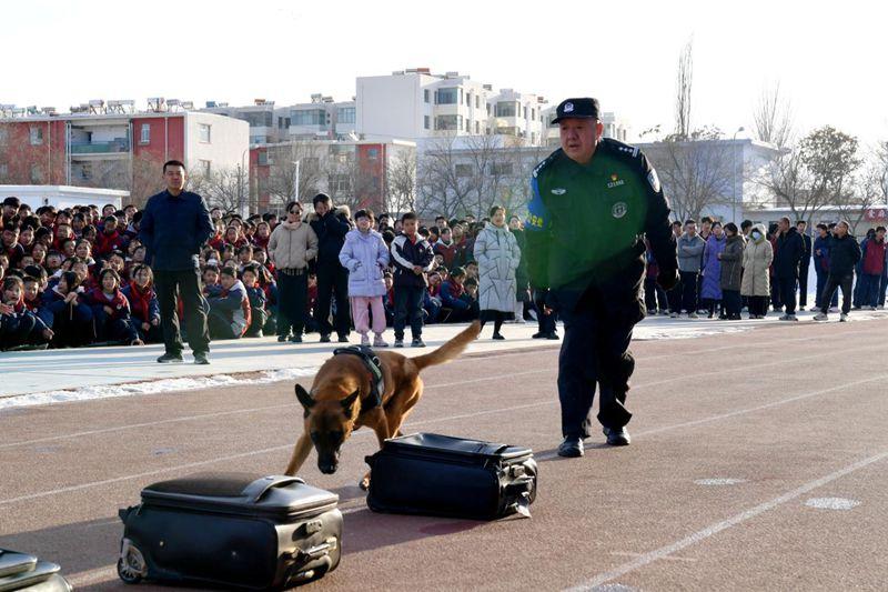 另一邊,警犬演示區(qū)域同樣人氣爆棚。訓(xùn)導(dǎo)員帶著訓(xùn)練有素的警犬登場,瞬間吸引了全體師生的目光。在訓(xùn)導(dǎo)員的指令下,警犬依次展示了服從指令、搜爆排查等科目,動作迅猛精準(zhǔn)、配合默契無間。演示過程中,訓(xùn)導(dǎo)員還向同學(xué)們講解了警犬的品種、訓(xùn)練日常,不少同學(xué)主動提問,近距離觀察警犬,感受人與犬之間的默契與堅(jiān)守,現(xiàn)場掌聲此起彼伏。