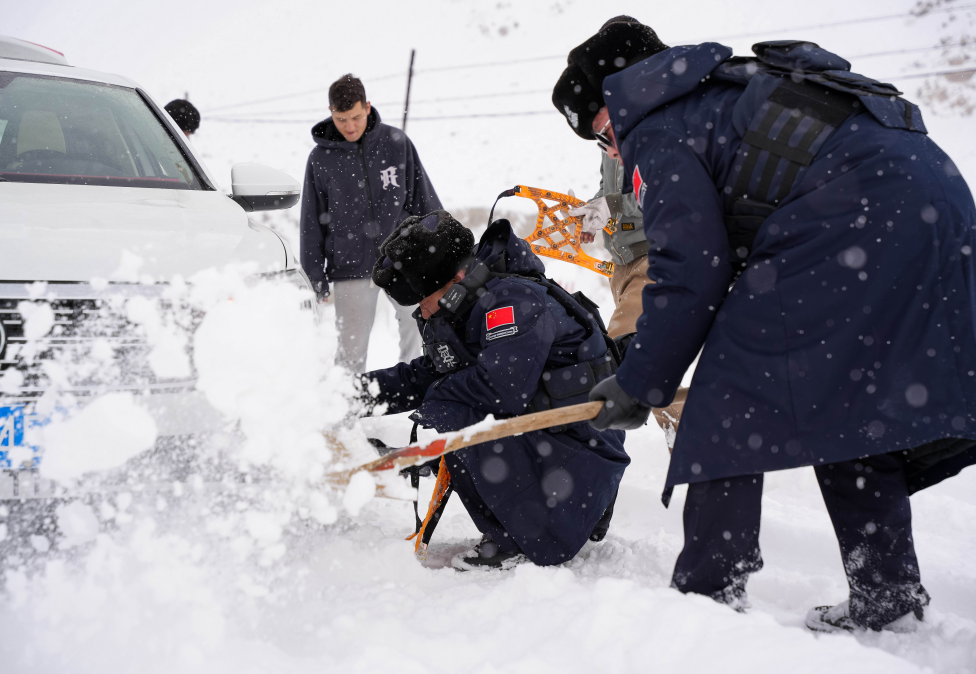 在極具探險(xiǎn)魅力的塔莎古道,2025年1月5日的一場(chǎng)大雪阻斷了過(guò)往旅客的通途,正在轄區(qū)巡邏的民警劉濤知曉情況后第一時(shí)間趕赴現(xiàn)場(chǎng)開展救援行動(dòng)。他一邊引導(dǎo)過(guò)往車輛減速慢行,維護(hù)交通秩序,一邊使用鐵鍬和繩索等救援工具施救,持續(xù)奮戰(zhàn)7小時(shí),成功救出被困車輛60余輛,群眾200余人。