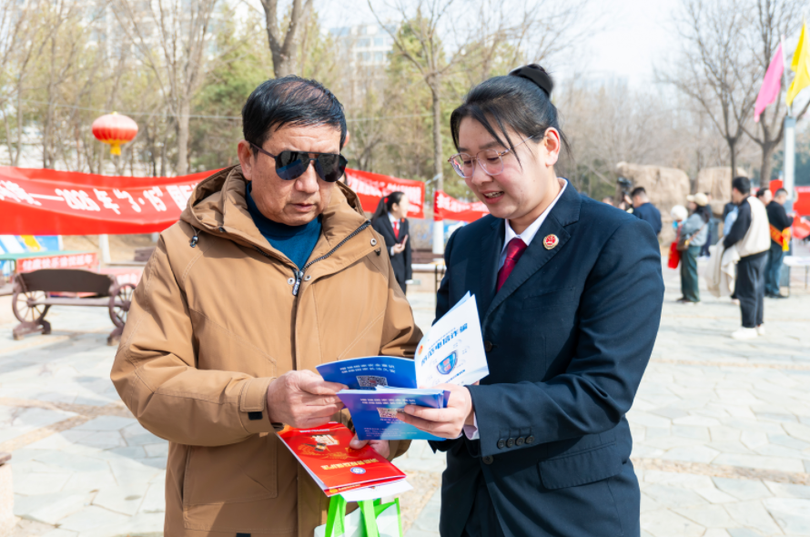 圖為烏海市人民檢察院干警向群眾發(fā)放宣傳資料并講解有關(guān)法律知識(shí)。