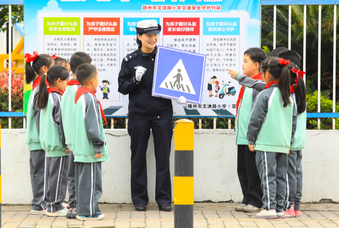 在第31個(gè)全國中小學(xué)生安全教育日來臨之際,江西省贛州市公安局交管支隊(duì)章貢大隊(duì)組織民警深入轄區(qū)校園,通過以案釋法、實(shí)景講解、互動(dòng)問答等方式,向同學(xué)們宣傳交通安全法律法規(guī),切實(shí)提升中小學(xué)生交通安全意識(shí)與自我防護(hù)能力。