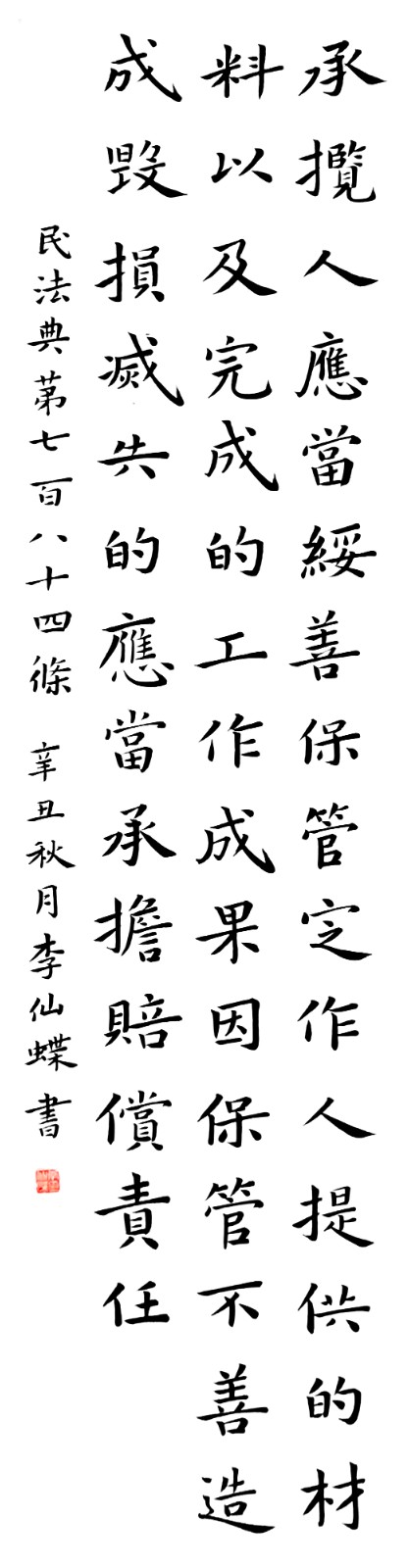 民法典第七百八十四條 承攬人應(yīng)當妥善保管定作人提供的材料以及完成的工作成果,因保管不善造成毀損、滅失的,應(yīng)當承擔賠償責(zé)任。