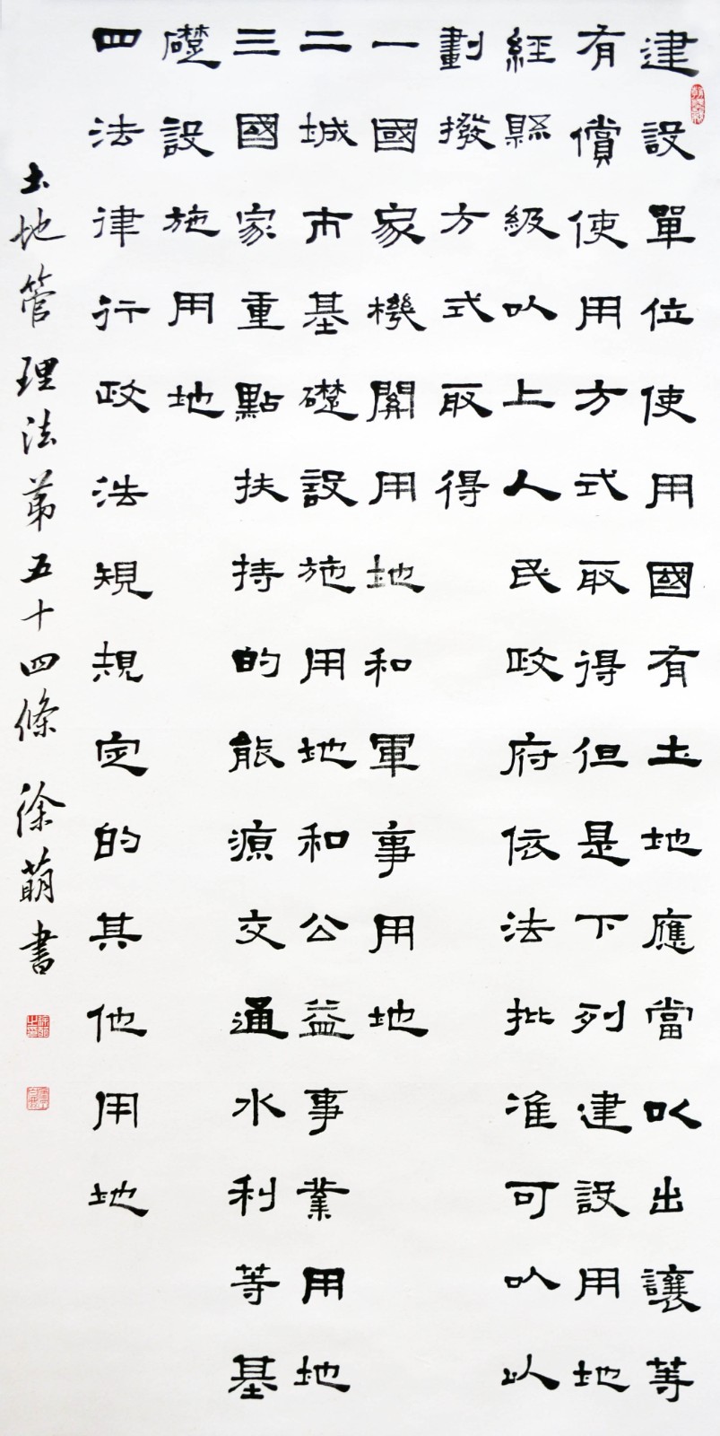 繼1600余位書法家參與書寫《中華人民共和國(guó)民法典》全部1260條法條之后,法治日?qǐng)?bào)社聯(lián)合自然資源部法規(guī)司、自然資源部書畫研究會(huì)和北京昌平書法家協(xié)會(huì),將筆端對(duì)準(zhǔn)土地管理“一法一條例”,即《中華人民共和國(guó)土地管理法》和《中華人民共和國(guó)土地管理法實(shí)施條例》。