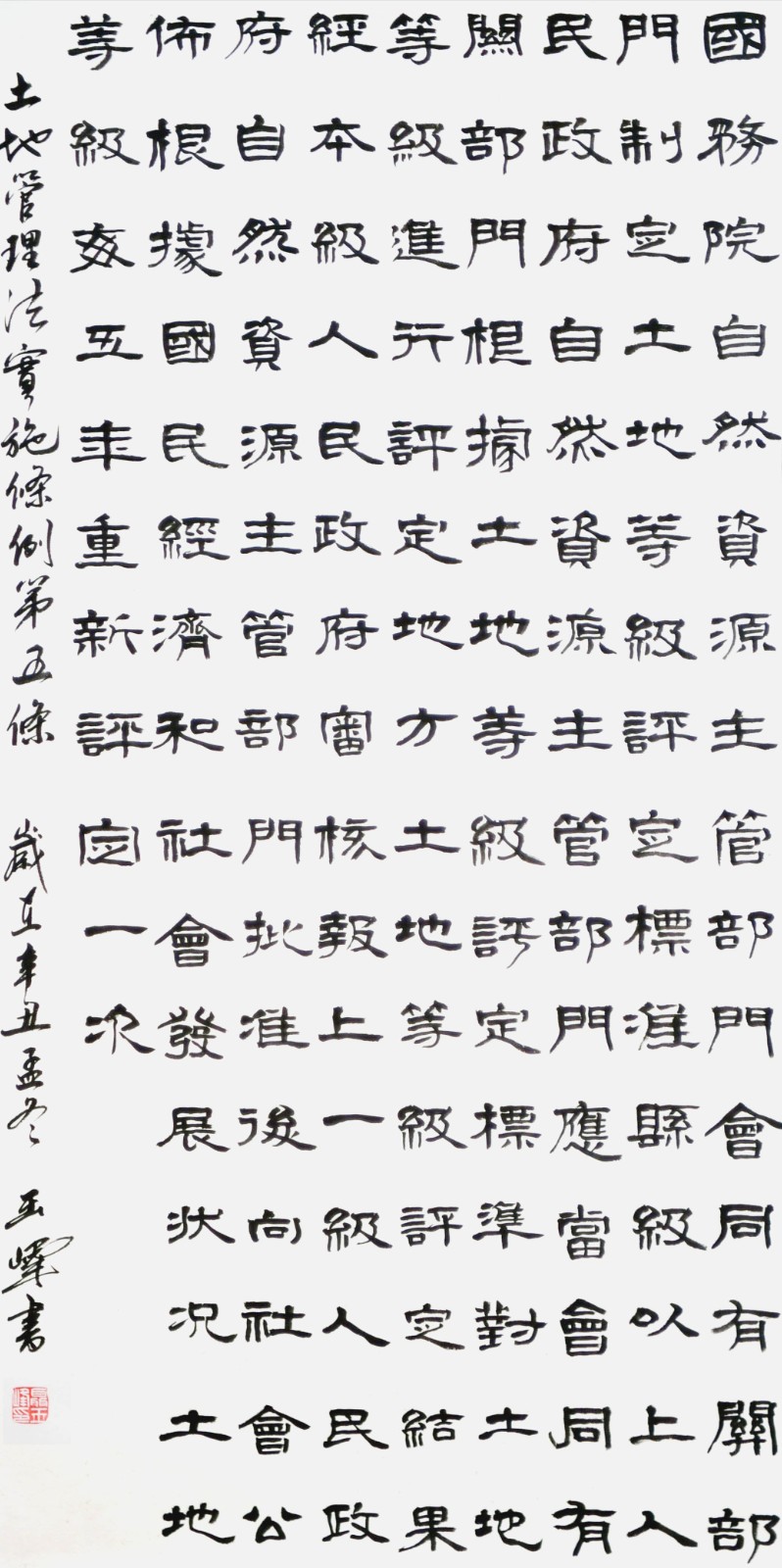 繼1600余位書法家參與書寫《中華人民共和國民法典》全部1260條法條之后,法治日報社聯(lián)合自然資源部法規(guī)司、自然資源部書畫研究會和北京昌平書法家協(xié)會,將筆端對準土地管理“一法一條例”,即《中華人民共和國土地管理法》和《中華人民共和國土地管理法實施條例》。