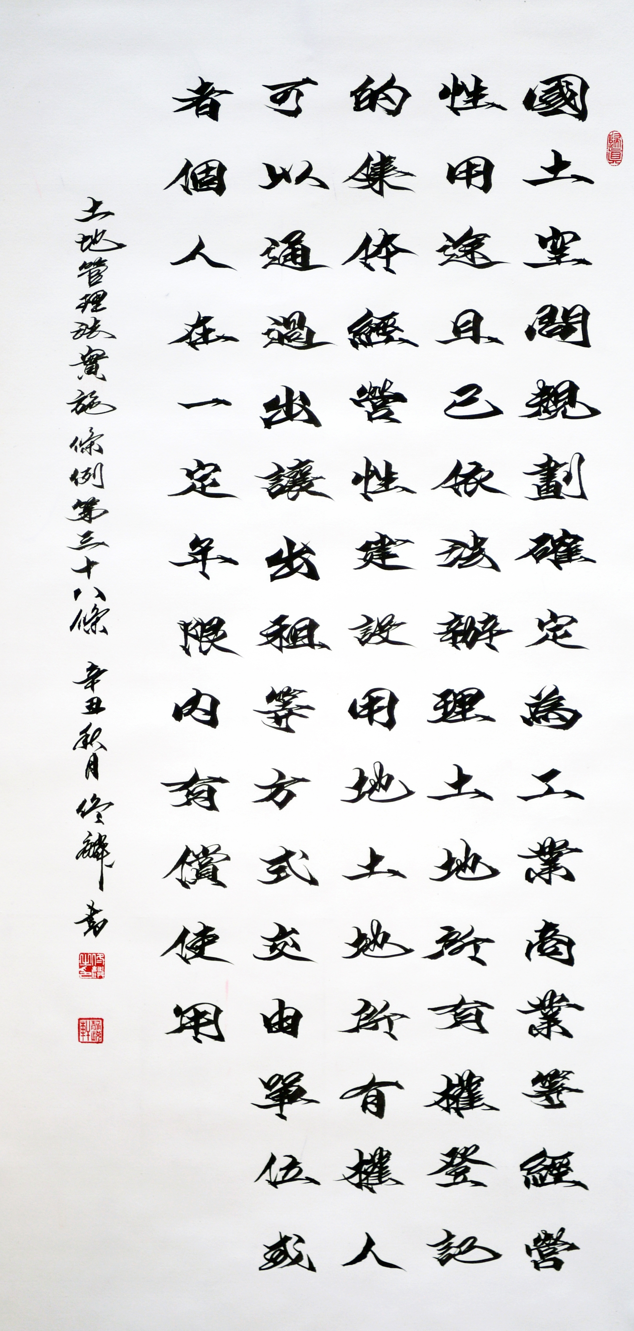 繼1600余位書(shū)法家參與書(shū)寫《中華人民共和國(guó)民法典》全部1260條法條之后,法治日?qǐng)?bào)社聯(lián)合自然資源部法規(guī)司、自然資源部書(shū)畫研究會(huì)和北京昌平書(shū)法家協(xié)會(huì),將筆端對(duì)準(zhǔn)土地管理“一法一條例”,即《中華人民共和國(guó)土地管理法》和《中華人民共和國(guó)土地管理法實(shí)施條例》。