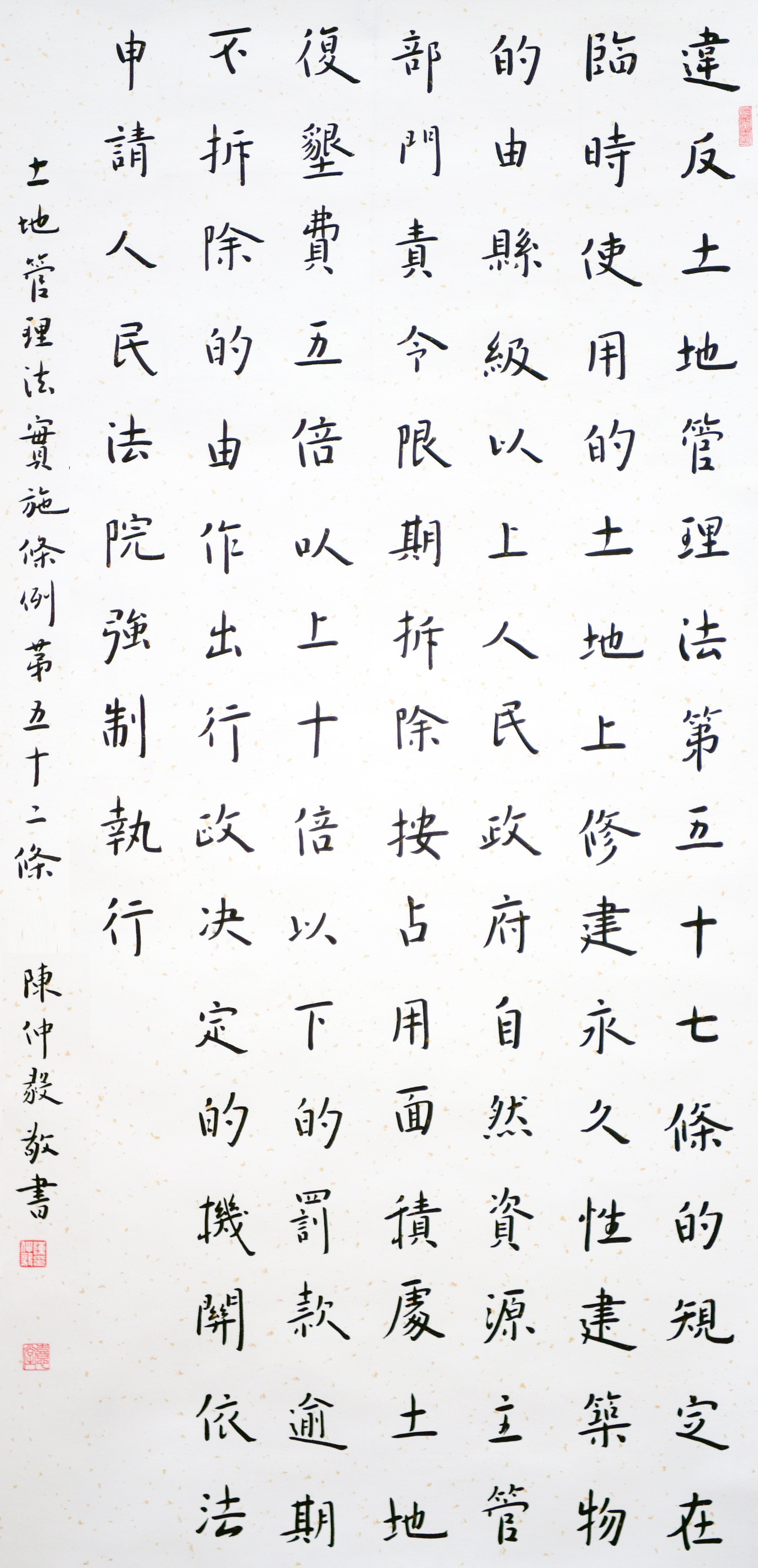 繼1600余位書法家參與書寫《中華人民共和國民法典》全部1260條法條之后,法治日報(bào)社聯(lián)合自然資源部法規(guī)司、自然資源部書畫研究會和北京昌平書法家協(xié)會,將筆端對準(zhǔn)土地管理“一法一條例”,即《中華人民共和國土地管理法》和《中華人民共和國土地管理法實(shí)施條例》。
